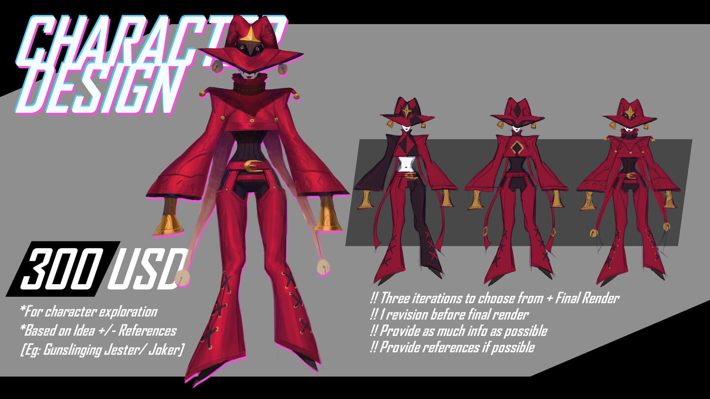 Work time period is 1 week to 1 month with regular updates in between each illustration phase (thumbnails, sketch, flats, shading block-in, render)